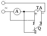 電流互感器接線如圖3所示。圖中Q為單級雙投開關。當開關投向"1"時,電流表的讀數較小,投至"2"時讀數較大,則證明是減極性,杏則為加極性。